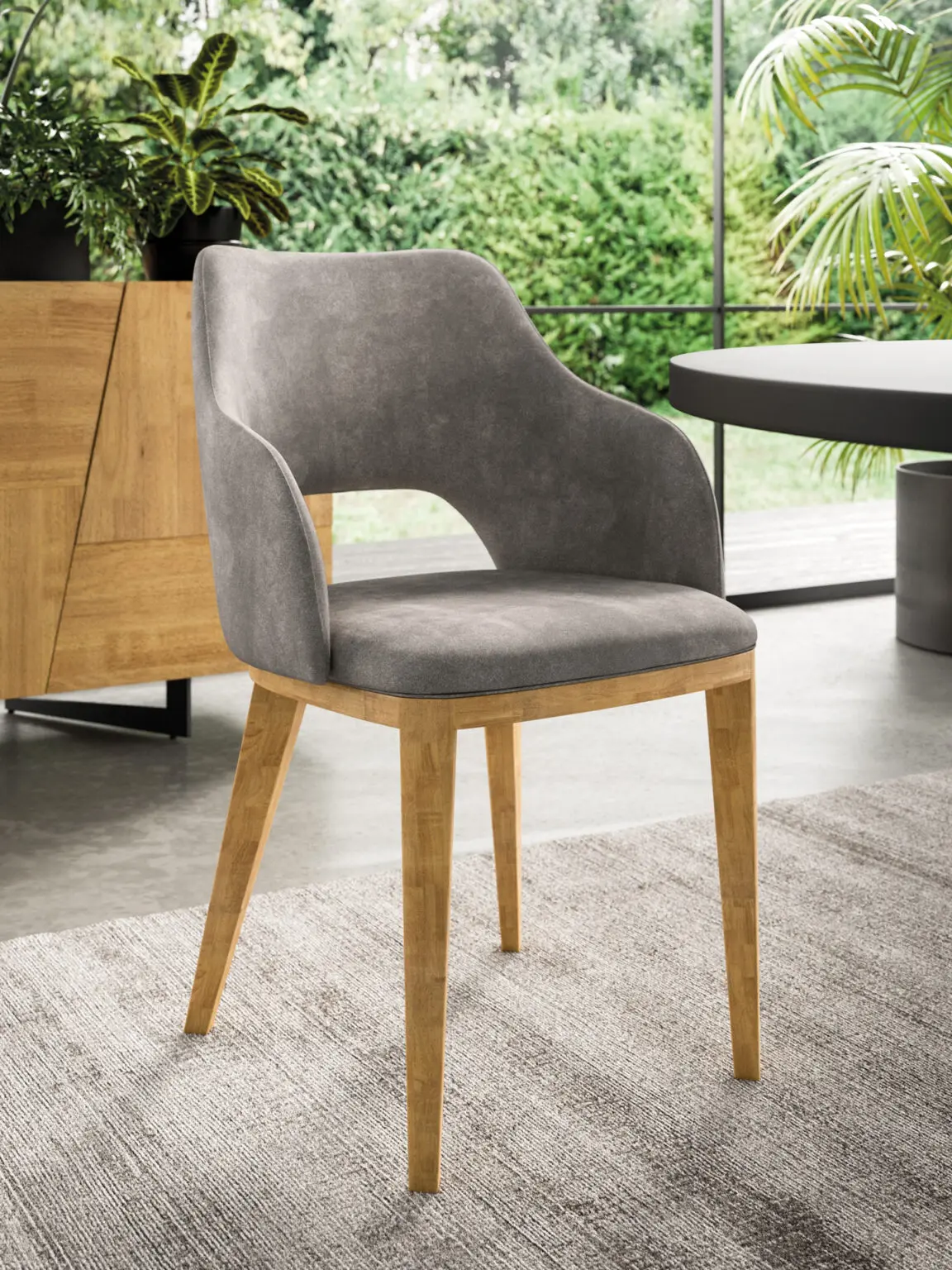 La poltroncina Diva ridefinisce il concetto di comodità. L’aggiunta dei braccioli trasforma la seduta in un abbraccio avvolgente, ideale per accompagnare lunghi pranzi in compagnia o momenti di puro relax.