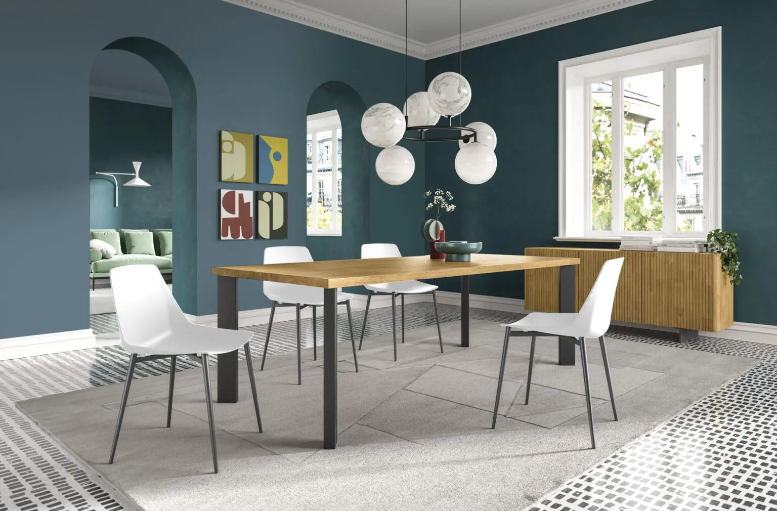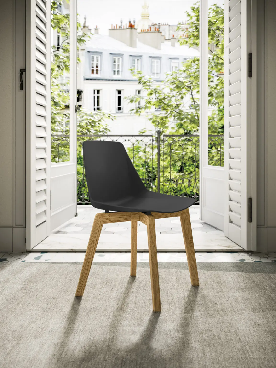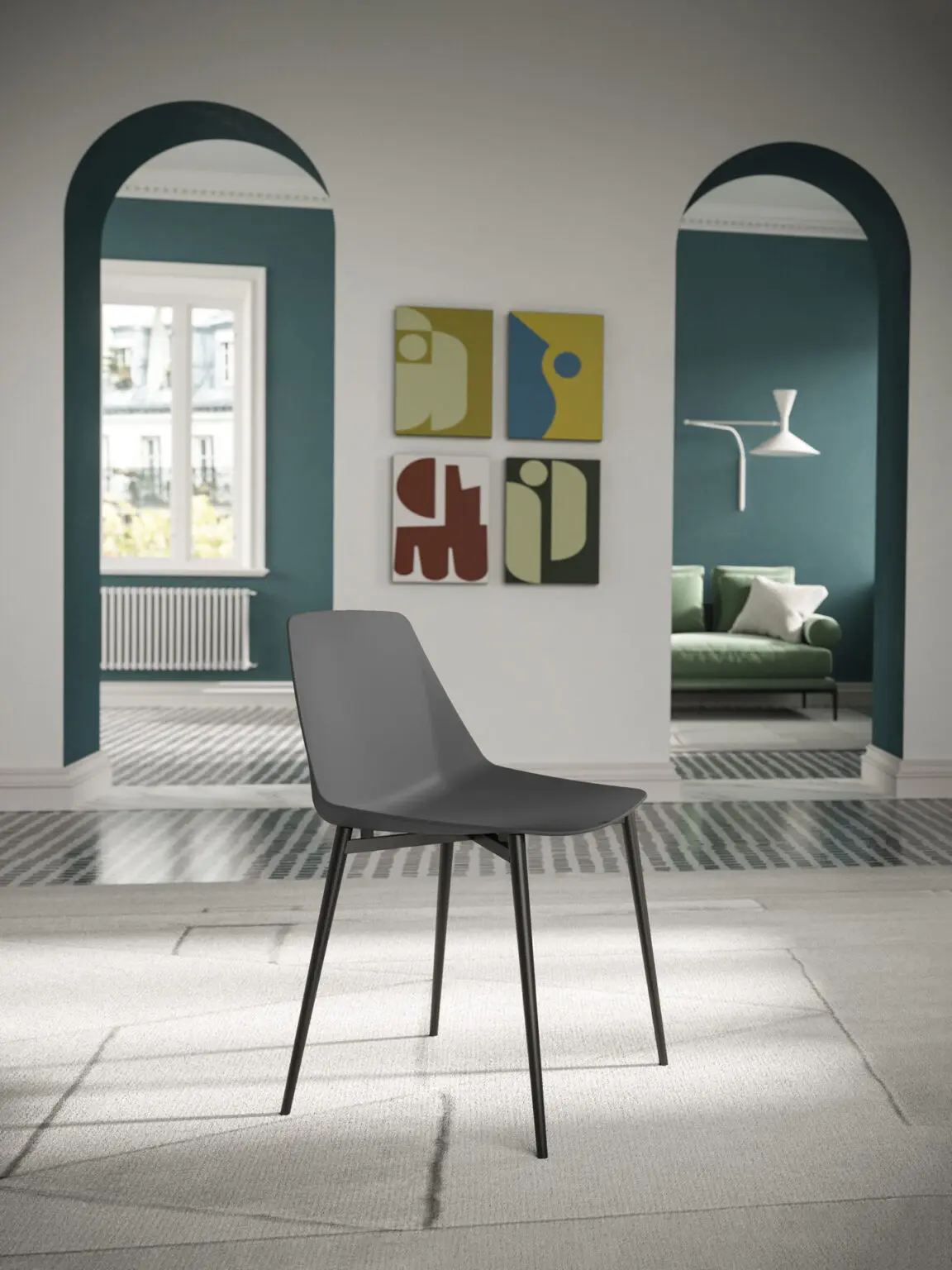 Il suo carattere versatile si esprime attraverso la scelta della struttura: la robustezza rassicurante del vero legno massello, per chi desidera una solidità senza pari, oppure il profilo slanciato della base metallica, per una leggerezza visiva dal gusto contemporaneo. Protagonista assoluta è la scocca in polipropilene, proposta in tonalità attuali e di tendenza che rendono questa sedia un complemento d’arredo esclusivo.